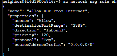 az network nsg rule list --nsg-name nsg-mgmt-eastus --resource-group theneighborhood-rg2