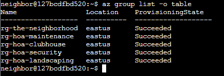 Barry to Goose tipped me off that that neighborhood HOA hosts a static website on Azure storage and that an admin accidently uploaded an infrastructure config file that contains a long-lived SAS token. A Shared Access Signature token is a time-limited URL credential that grants permission to Azure storage files. I am again in the same terminal on the Azure Server and will start by listing the groups: