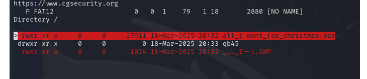 After mounting the floppy disk I used a tool called testdisk that allows you to look into the floppy.img diver further into it’s contents. Opening the image with testdisk then selected “None” as the default partition type and this is when I had to use some clues from Mark. He mentioned he loved to work with FAT12 partition types and he loves BASIC because “When you delete something it’s not actually deleted”, plus that he also love Star Trek. From there I selected the FAT12 Partition type and found this deleted Basic File that was a Star Trek Game: